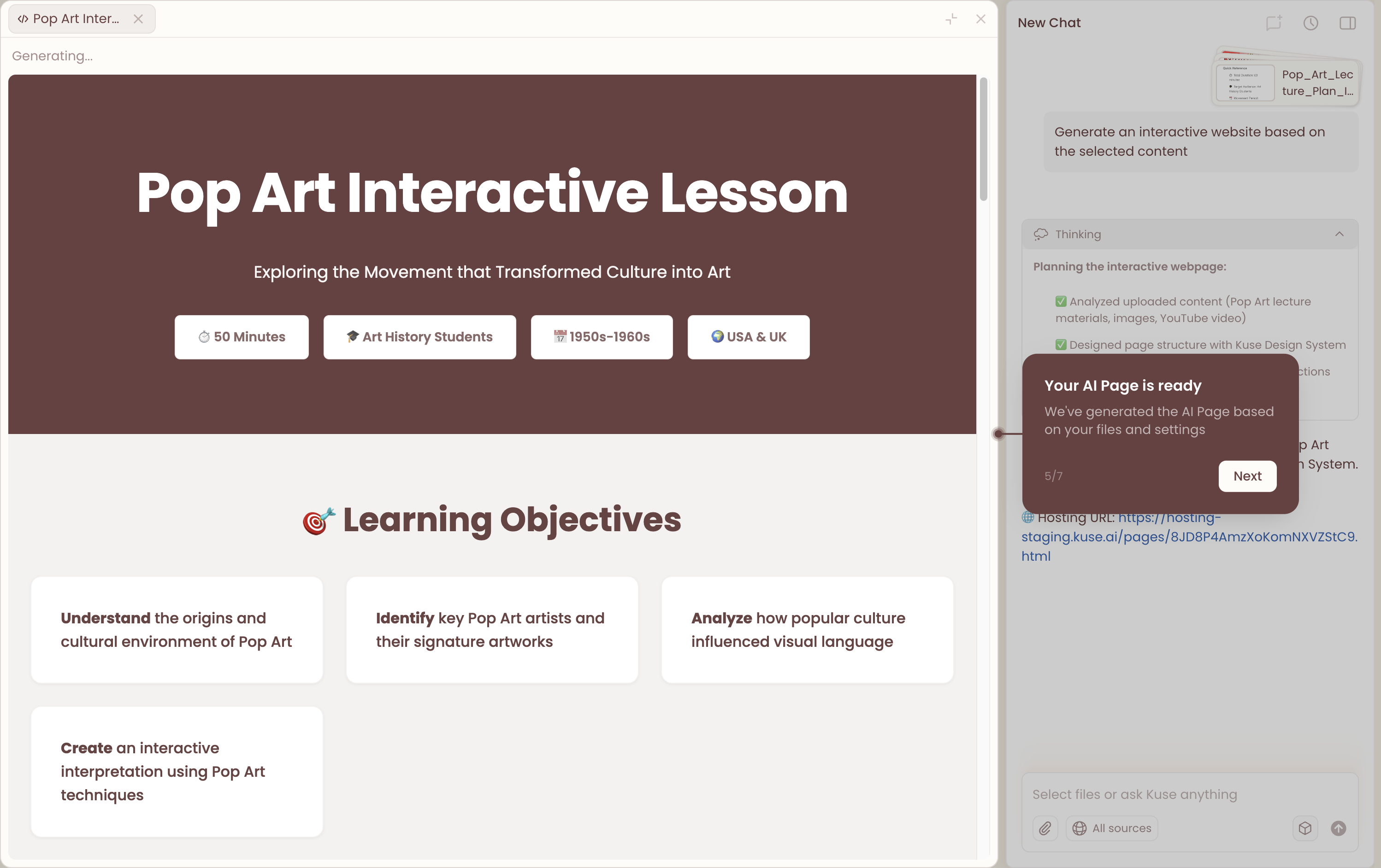 Kuse is a web-based workflow for turning your files and materials into structured outputs—without requiring a macOS desktop app or local folder access.